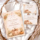 A warm and cozy fall baby shower design featuring a hand-painted watercolor pumpkin surrounded by soft peach florals, golden leaves, and delicate autumn accents. The earthy orange palette and elegant arch layout create a refined harvest aesthetic that feels timeless and inviting. Perfect for an autumn celebration, a neutral fall theme, or a charming “Little Pumpkin” baby shower with rustic floral details.