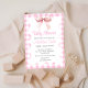 Célébrez votre joie à venir avec élégance et charme grâce à notre Coquette Pink Bow Baby shower Girl Invitation. Ce design délicat et élégant présente une palette de couleurs roses douces, une illustration de proue et une typographie élégante qui saisit parfaitement la douceur de l’arrivée d’une petite fille.