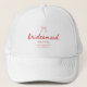 Coquette Bow Script Custom Bridesmaid's Name Trucker Hat. Personalize with your bridesmaid(s) name, bachelorette or wedding location, and date if desired.