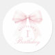 Coquette Pink Bow Erster Geburtstag Runder Aufkleber