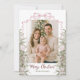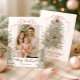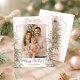 Freuen Sie sich auf die elegante Weihnachtsfotokarte. Mit einem Foto, das durch die Aquarellfarben Evergreens, Ornamente und einen festlichen Coquette-Rosa-Bogen gerahmt ist, verbindet dieses Design wunderbar den saisonalen Charme mit einer modernen Touch. Die Vorderseite zeigt Ihren Urlaubsgruß und Familiennamen, während die Rückseite Platz für eine personalisierte Nachricht bietet, was jede Karte herzlich und einzigartig macht. Ideal, um während der Ferienzeit Freundinnen und Lieben herzliche Wünsche zu schicken.
