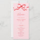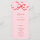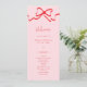 La conception du programme de mariage met en valeur un ruban rouge audacieux au-dessus d'un arrière - plan rose doux. Combiné à des polices élégantes et à un script branché, il dégage une ambiance moderne mais chic et charmante qui séduira les destinataires. Ce style unique donne le ton d'une célébration passionnante qui ravira les invités dès la réception de la carte.
