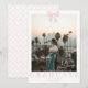 Coquette Pink & White Bow Foto Abschluss Ankündigung mit rosa Trellis auf der Rückseite.