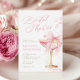 Set der Ton für eine elegante Brunch & Bubbly Feier mit dieser Coquette Prosecco Bridal Dusche Einladung entworfen mit einem schicken Gold und rosa Glas mit einem eleganten rosa Bogen mit rosa Blütenblättern. Die weiche, blaue Aquarellfarbe und das elegante Script sorgen für eine Touch an Eleganz und machen es zu einem stilvollen Brunch & Bubbly Brautparty.