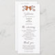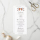 Programme de coquette et de mariage rustique avec illustration dessinée à la main des arcs et fleurs marron en terre cuite. Toutes les informations sur la cérémonie du mariage et le nom de la fête de mariage indiqué sur ce programme.