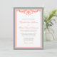 Un faire-part de mariage formel comportant un remous élégant de flourish. Montré dans le gris et le corail.