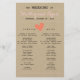 Programme de mariage simple au coeur avec des accents rose vif et corail sur un arrière - plan Kraft imprimé. Donnez aux invités les détails de votre journée de cérémonie. Parfait pour un mariage de grange rustique !