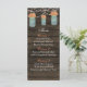 Bois de Barnwood rustique, feux à cordes pendants avec fleurs de corail dans un menu mariage de bocal de mason. Produits correspondants également disponibles.