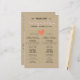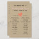 Einfaches Hochzeitsprogramm mit rot-rosa Akzenten und Korallenakzenten auf einem gedruckten Kraft-Hintergrund. Geben Sie den Gästen die Einzelheiten Ihres Festtages. Ideal für eine rustikale Scheune Hochzeit!