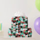 Dieses Verpackungspapier hat ein Drei-Winkel-Muster im Stil eines Memphis in den tropischen Korallen und aquamarinen Farben. Dieses Design im Florida-Stil hat viele geometrisch geformte Muster in den Dreiecken, zusammen mit Miami-Palmen-Blätter, die über das gesamte Muster verteilt sind. Sie können das Muster auf dem Geschenkpapier vergrößern oder verkleinern. Dieses Packpapier macht ein stilvolles Deckblatt für Geschenke, die Sie jemandem geben, der den Stil des 80er Memphis Liebe.