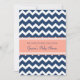 Invitations personnalisées de douches pour bébés dans l'élégant et moderne motif de zigzags du chevron zigzags bleu marine foncé, rose pêche vive et rose orange blanc. Personnalisable avec votre texte, contactez-nous pour demander un changement de couleur.
