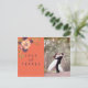 Carte de remerciements rustique, élégant, moderne bleu marine et mariage corail, avec des fleurs rose pastel et couleur d'eau et photo personnalisée.