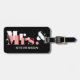Niedliche Gepäckmarke von Mr. und Mrs. Personalisierter Name. Elegante Hochzeit / Flitterwochen Geschenkidee für frisch verheiratete Gäste. Machen Sie sich ein für die neue Braut und Bräutigam. Mann und Ehefrau anwesend. Typografie-Design mit Korallenrosa und weißem Buchstaben.