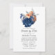 Coral - rustikale Pfirsich und marineblau Aquarell Blütenbaby oder Brautparty per Post Einladung mit Imitate Folie silber Blattwerk entwickelt, um schnell und einfach auf Ihre Event-Spezifikationen angepasst werden.