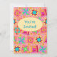 Mit dieser farbenfrohen, individuell anpassbaren Quilt-Einladung laden Sie ein Quilter oder Quilt-Liebhaber ein. Voll anpassen auf der Vorder- und Rückseite, um Ihre eigenen Worte, Namen und andere Informationen hinzuzufügen. Diese originelle Quiltkunst ist eine lebendige Einladung. Quilt Art basiert auf originalen Kunstwerken, mit bevorzugten Patchwork-Quiltblöcken und einzigartigen Blöcken in lebhaften und dynamischen Farben von Orange, Gelb, Rosa, Türkis und Kalkgrün auf einem korallenorangen Hintergrund für eine schöne Farbpalette. Ein sonniges gelbes Oval steht auf der Vorderseite der Karte, um zu sagen "You're Invited" oder andere Worte Ihrer Wahl. Zeigen Sie Ihre Liebe, mit diesen Quilt-Art-Designs mit anderen Quilt-Art-Produkten zu quiltieren. Quilt art ist eine originelle Kunst aus Stoff und Quilt Designer Phyllis Dobbs und ist in einer Stoffsammlung von Quilting Treasures. Diese Kunst ist auf anderen Produkten und in verschiedenen Farben erhältlich. Mehr Produkte gibt es im Phyllis Business with Flair Store. Passend zu koordinierenden Briefmarke, Umschlägen, Aufklebern und Rücksendeadressen-Aufklebern.