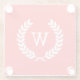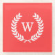 Coral Red Wht Wheat Laurel Wreath Initial Monogram Glasuntersetzer