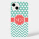 Coral und Aqua Polka Dot Zickzack Monogramm Case-Mate iPhone Hülle