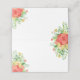 Blanche Hochzeitsfeier, perfekt für Hochzeitsfeiern im Frühjahr und Sommer, mit Blumensträußen von Rose und Grünpflanzen in Gelb, Korallenrot und schönen Grüntönen. Das Innere weist ein passendes Muster mit denselben Blume auf.