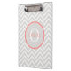 Die Coral Zickzack Monogram Clipboard zeichnet sich durch ein hellgraues Zickzack Muster mit einem in Korallen umrissenen Kreisemblem aus. Weitere Artikel sind auch mit diesem Design erhältlich. Bitte kontaktieren Sie mich direkt für Hilfe bei der Personalisierung.