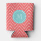 Coral Zickzack Pattern | Minze grüne Monogramm Dosenkühler