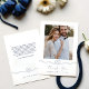 Notre carte de remerciements photo minimaliste et élégant sur le thème marin et blanc est parfait pour un mariage marin sur le thème océanique. Le design avant présente notre illustration de noeud de corde en forme de coeur dessinée à la main avec "Merci" conçu dans une élégante typographie de script fluide. "Merci" est conçu dans une élégante typographie de script fluide. Customisez avec votre photo. Les couleurs vives blanches et marines créent un design nautique moderne. L'envers présente notre illustration de corde dessinée à la main ainsi qu'un message personnel et le nom du couple. Toutes les illustrations sont des oeuvres originales dessinées à la main par Moodthology.
