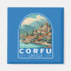 Corfu retro vector travel design. Corfu, a stunning Greek island in the Ionian Sea, is known for its crystal-clear waters, lush landscapes, and rich cultural heritage.