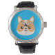 Uhr, Vintage Männeruhr mit schwarzem Lederarmband