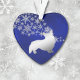 Ce joli ornement de vacances fera un merveilleux cadeau de conservation pour quiconque aime un Corgi! Il présente une silhouette argentée Corgi image de chien devant un spray de flocons d'argent orné. L'image est placée sur un arrière - plan bleu profond dégradé. L'arrière de l'ornement a le même arrière - plan bleu et des flocons de neige, et un champ de texte pour vous de customiser. Belle !