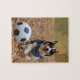 Corgi, der Fußball spielt