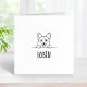 Einfache Cartoon-Darstellung eines glücklichen Corgis, der von hinter einem Trenner herbeiwindet. Nur der Kopf und die Vorderpfoten sind sichtbar. Anpassbarer Name.