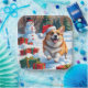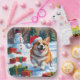Ein fröhlicher Corgi läuft spielerisch durch die schneebedeckte Winterszene und trägt einen festlichen roten Weihnachtshut. Dieses fröhliche Design unterstreicht die kurzen Beine der Rasse, das flauschige Fell und die lebendige Persönlichkeit, während es die Wärme und den Charme der Urlaubssaison einfängt. Herzlich willkommen im Winter, voller Feststimmung.
