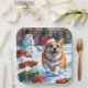 Corgi läuft im Schnee mit Weihnachtshut Pappteller