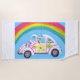 Corgis in Hippie-Auto am Strand mit Regenbogen Strandtuch