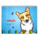 Niedlicher Wandkalender für Ihre Zuhause, Ihr Büro oder ein Geschenk für einen Hundefreund. Verfügt über jeden Monat eine andere originelle Abbildung von Off-Leash Art™ der Lieblings-Corgi Hundezüchtung.