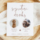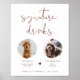 Dieses Signatur-Getränkedosenschild verfügt über zwei Foto-Slots, einen edlen handgeschriebenen Schriftart und ein modernes minimalistisches Design. Ändern Sie ganz einfach die Schriftart- und Hintergrundfarbe, um sie Ihrem Event anzupassen. Dieses Schild eignet sich hervorragend, um Braut und Bräutigam, Kinder oder Ihre Lieblingstiere hinzuzufügen.