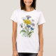 Alte botanische Darstellung von Maisblumen in Blau, Gelb und Weiß.