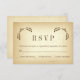 Elégant coin feuille beige mariage RSVP modèle de carte-réponse qui met en vedette de beaux feuilles marron sur les coins supérieurs sur l'arrière - plan beige grunge. Un design personnalisable et personnalisé avec un look vintage, mais parfait pour un mariage contemporain et moderne.