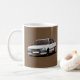 Französischer Klassiker aus den 80er Jahren. Zwei weiße Mops 505 Autoabbildungen auf einer Kaffee-Tasse. Großartiges Geschenk für Vintage Fanatiker. Passen Sie den Stil und die Hintergrundfarbe der Tasse an.