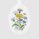 Illustration botanique ancienne des fleurs de maïs en bleu, jaune et blanc.