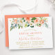 Die moderne elegante Watercolor Coral Floral Bridal Dusche Einladungskarte beinhaltet Rose aus Korallenpfirsichen, weiße Blume und botanische Blätter aus Grünpflanzen. Trendy Kalligrafie Script. Gold Text.