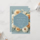 Experience a romantic union with this artistic design. A lush arrangement of creamy white and golden ochre chrysanthemums blooms against a serene cornflower blue background. The soft, painterly details create a timeless and elegant atmosphere for your special day.