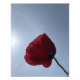 Ursprüngliches Foto aus Perranporth, Cornwall am Tag bevor der Sturm Aaron durchblutete. Blauer grauer Himmel mit Sonnenlichtring betont die leuchtend roten Blütenblätter und der zarte grüne Stamm des perfekten Mohns.