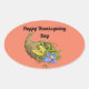 Jolie cornucopie avec des fleurs, est présenté sur cet autocollant ovale pour Thanksgiving. Avec le message, "Bon thanksgiving Day", cela fait un grand autocollant pour les mailings spéciaux, la décoration, scrapbooking et plus encore!