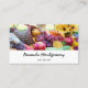 Visitenkarten mit einem Foto von einem Tisch gefüllt mit Natur bounty. Set mit Cornucopia, bunt geerntetes Gemüse und Obst.
