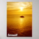 Goldener Sonnenuntergang mit Blick auf Newland Island von Ptotal Point, in der Nähe von Padstow, Cornwall, England.