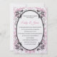 Montré dans un chanteur Pearl toujours populaire, cet invitation a un motif de couronnement rose Pastel imprimé dans l'arrière - plan sur le devant et sur le dos. Un Ovale Noir avec des feuilles-vignes de fantaisie encadre le texte à l'intérieur. Les noms de Mariée et de Groom sont surlignés dans un rose doux. Corps du texte affiché en noir. Choisissez votre choix de papier et customisez à partir de leur si désiré. images stocks.