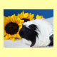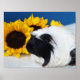 Das Koronett-Guinea-Schwein ist König, oder zumindest sieht er aus, als ob er neben einer riesigen gelben Sonnenblume sitzt. Copyright Cool Cavy Guinea Pig Shop
