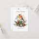 Weihnachts-Visitenkarte. Dieses Design zeigt eine Aquarellbilder von Rot - geröstetem Rotkehlchen auf einem Kiefernzweig. Fügen Sie Ihren Firmennamen und Ihre persönlichen Weihnachtsgrüße hinzu.