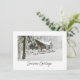 Une scène hivernale magique de cabine dans la neige. Carte de Noël parfaite.
