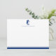 Une carte de bureau à thème marine bleu et blanc à thème nautique plat. Il s'agit d'un grand ajout à un bureau à thème nautique ou à un ensemble de fournitures de papeterie personnelle et une façon amusante et individuelle d'envoyer un message manuscrit. La carte peut être personnalisée avec l'inclusion d'un nom. L'arrière de la carte est en bleu marine et l'avant dispose d'un pied de page double bordé.